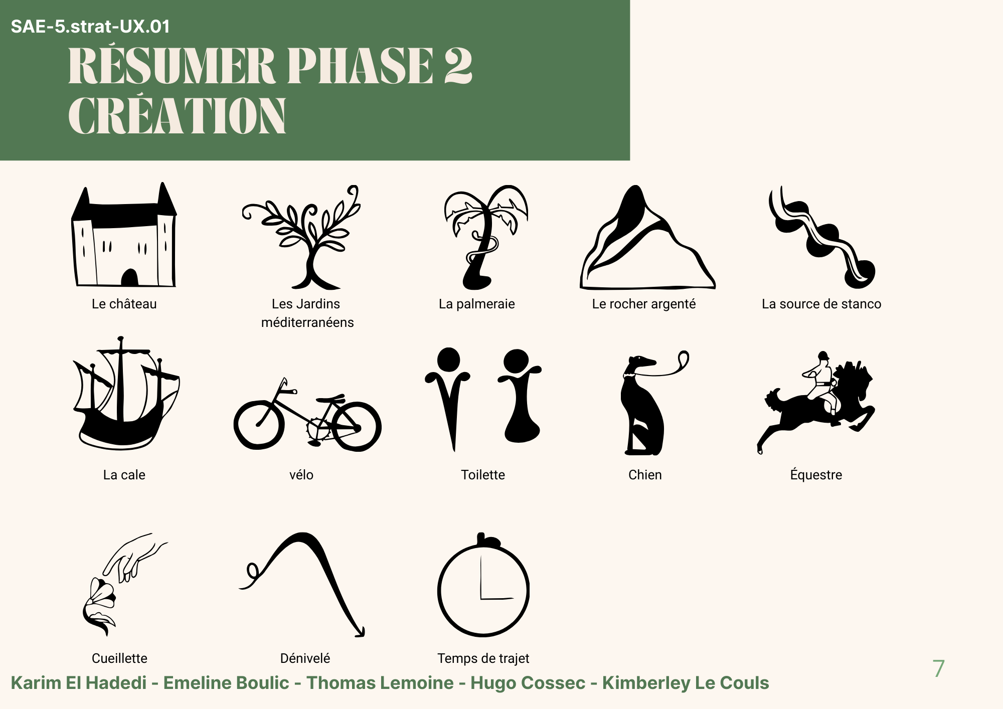 Création des icônes et pictogrammes du système de signalétique, ainsi que sélection des typographies afin d’assurer cohérence visuelle et lisibilité.