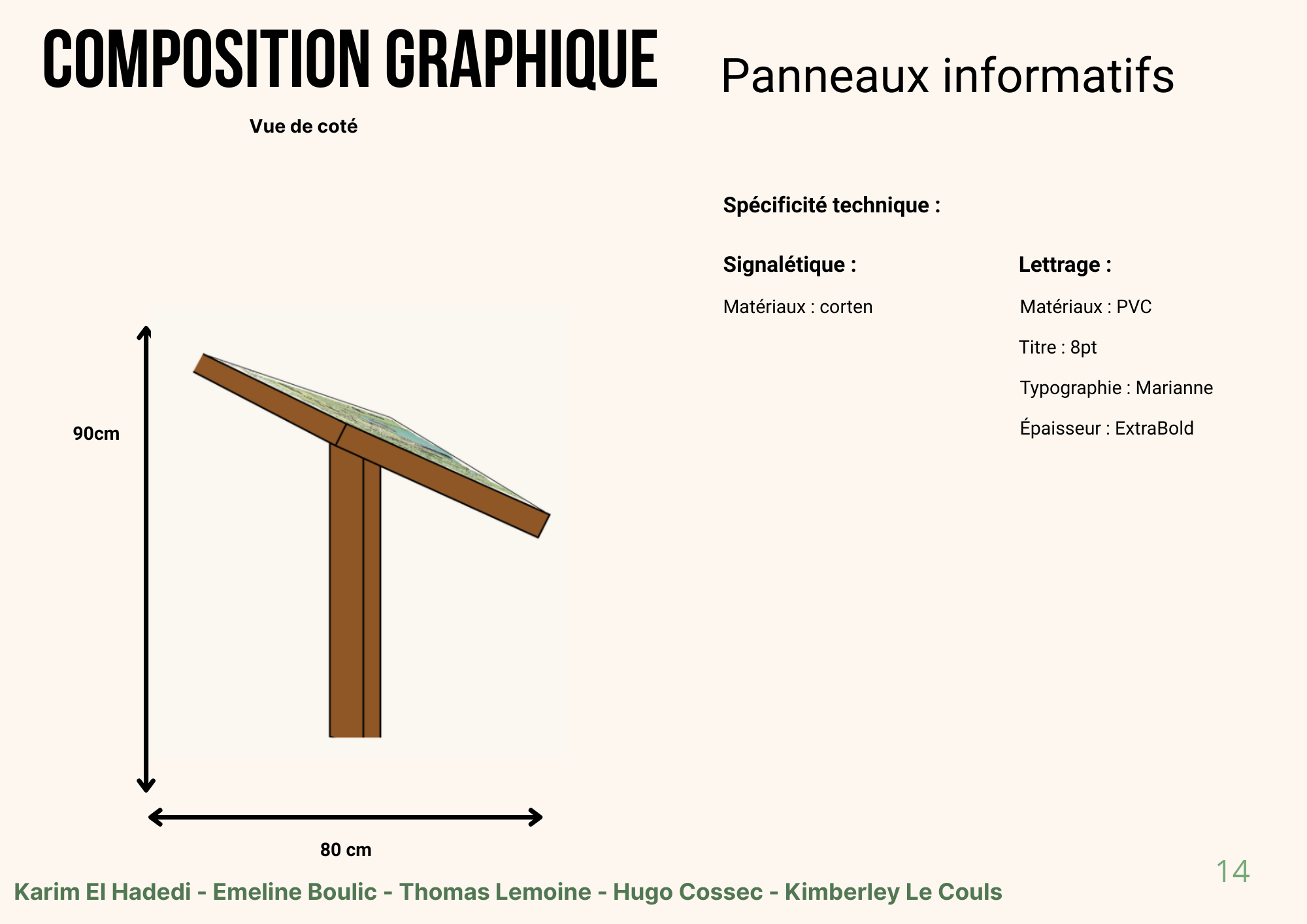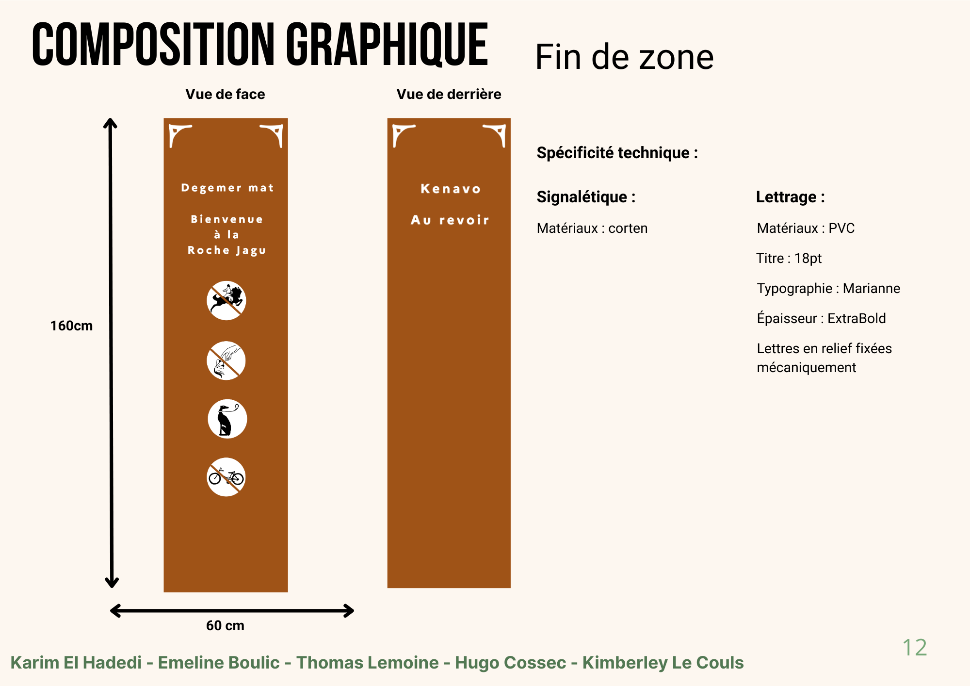 L’objectif était de concevoir un système complet capable d’orienter les visiteurs, d’informer et d’alerter les personnes à mobilité réduite sur les zones de forte pente, tout en respectant l’identité naturelle et patrimoniale du lieu.